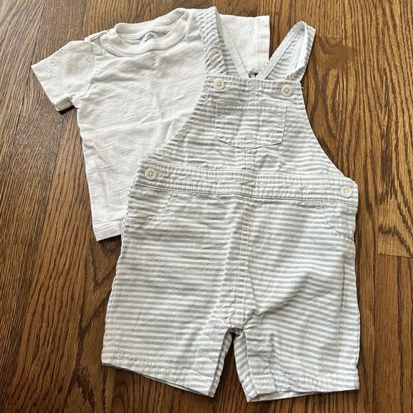 Cherokee striped overalls and T-shirt bundle, size 6-9M