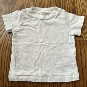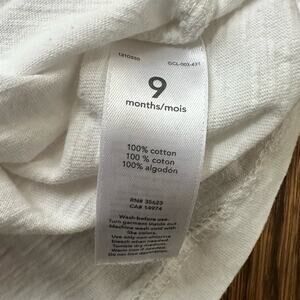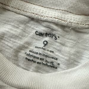 Paired with a solid white T-shirt from Carter’s. Brown contrast stitching on the shoulders. Burnout texture. Size 9 months.