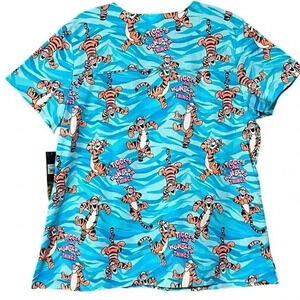 Cherokee x Disney Wonderful Tiggers Scrub Top Women 2XL Blue Winnie the Pooh NWT