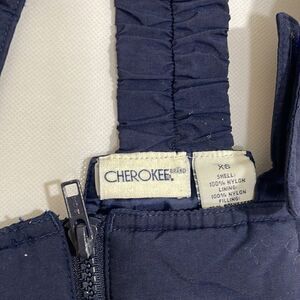 Cherokee Kids snow bib. Size (XS) Navy, Single cargo pocket, zip front enclosure and adjustable straps. Good Condition, normal wear. Smoke free /pet free home