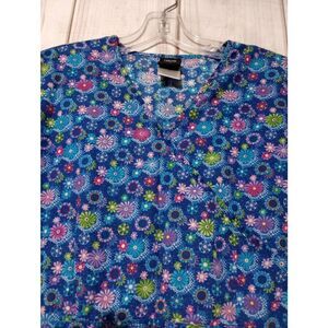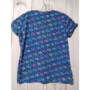 Cherokee Scrub Top Ladies Small Blue Ditsy Floral
