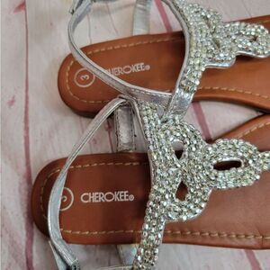 Cherokee silver sandals 3. Has a nick on the side of each shoe.