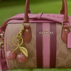Cherries glitter pink red color bag charm, gold hardward and clip