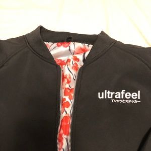 "Cherry Blossom Bomber" by Ultra Feel. New without tags. Lightly used, in great condition. Jacket has two pockets. The inside is lined with cherry blossoms.