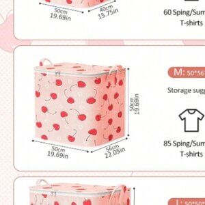*Cherry Canvas Zipper Closet Storage Small or Medium or Large Pink Red NWT