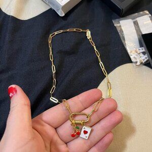 Charm necklace, 18K gold plated necklace, gold charm necklace, card charm necklace, lightning bolt charm necklace, cherry charm necklace, gold jewelry, handmade gold necklace, 18K gold jewelry, adjustable gold necklace, 18-inch gold necklace, charm necklace for sale, 18K gold charm necklace, card jewelry, lightning bolt jewelry, cherry jewelry.
