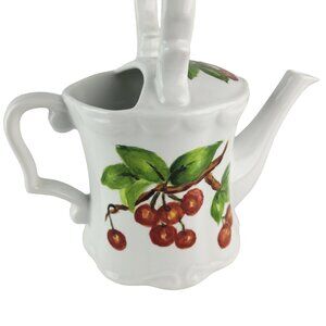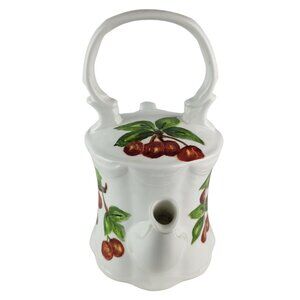 Cherry Ceramic Garden Hand Painted Watering Can Country Cottage Farmhouse Décor