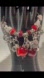 Stylish bracelet featuring cherry charms. Red and silver accents add elegance. There are 2 silver tags on it one says Brave and the other says Beautiful. It’s hard to see in the pic.
