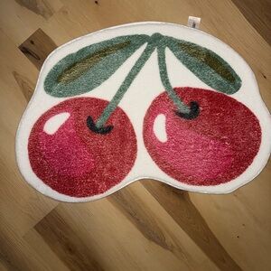 Add a playful touch to your bathroom with this cherry design bath mat. Featuring vibrant red cherries and green leaves, this mat is both stylish and functional.