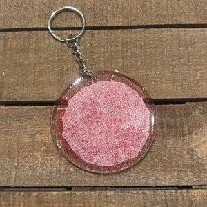 Add a touch of fun to your keys with this cherry-themed keychain. Featuring a vibrant pink design, it's a perfect accessory for any style.