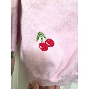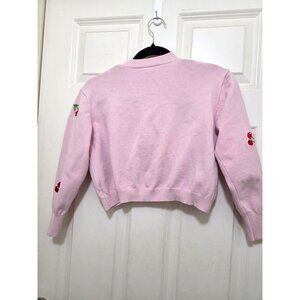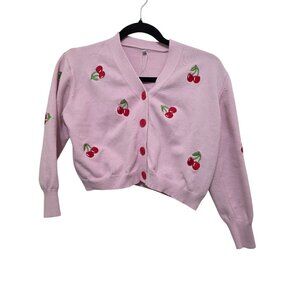 Cherry Embroidered Pink Cropped Cardigan Sweater Red Buttons Size S
