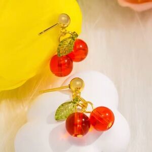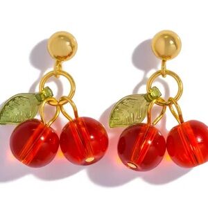 New Stainless Steel 18K Gold PVD Plated Drop Earrings for Women Trendy Red Cherry Charms Drop Earring Jewelry Gift