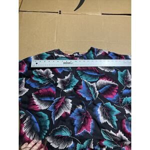 Cherry Hill Black Floral M Shirt, Short Sleeve Fall Fringe Top, Leaves Pattern