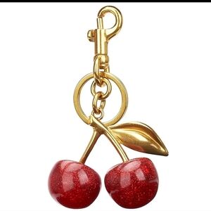 Add a playful touch to your accessories with this cherry key holder. Featuring vibrant red cherries and elegant gold accents, it's both stylish and functional.