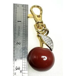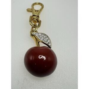 Cute cherry keychain with a gold clasp and a sparkly leaf. Adds a fun pop to your bag or keys. In very good condition. It’s adorable!