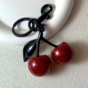 This cute cherry keychain is a unique and lovely fashion accessory that adds a playful charm to your bag or keys.