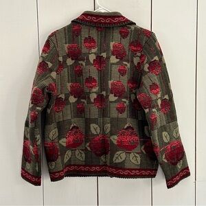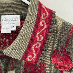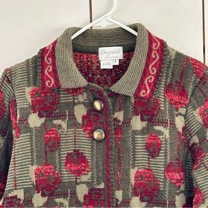 Cherry Lewis Rose Motif Wool Cardigan Sweater Pewter Button Grandma Core