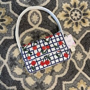 Stylish shoulder bag featuring a vibrant cherry pattern. Perfect for adding a pop of color to any outfit.