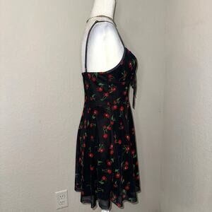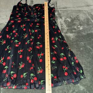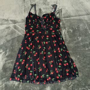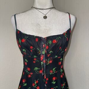 Cherry Print Mini Milkmaid Black Dress Women's Size S/M Casual Preppy