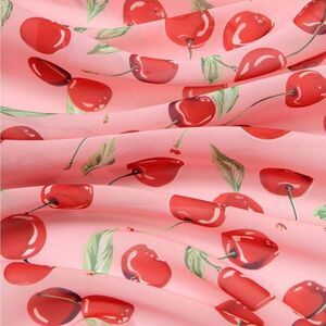 Add a playful touch to your outfit with this cherry print pink scarf. Perfect for any occasion.