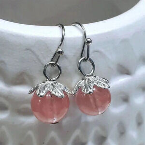 Cherry Quartz Gemstone Dangle Silver Platinum Plated Earrings
