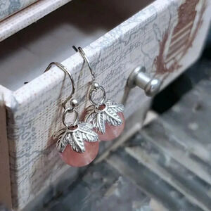 Artsy Leaf Capped Cherry Quartz Gemstone Dangle Silver Platinum Plated Earrings