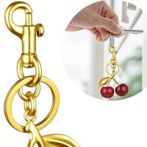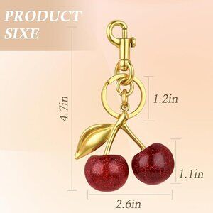 This cute cherry keychain is a unique and lovely fashion accessory that adds a playful charm to your bag or keys. The combination of bright red and luxurious gold makes the cherry purse charm beautiful and shiny, which can enhance your personal style.