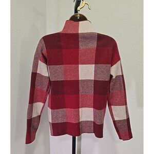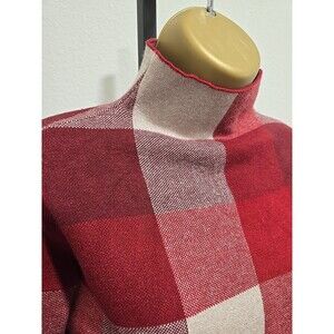 Talbots Cherry Red Mock Neck Plaid Sweater Womens Small Thick Classic Academia Warm Cozy