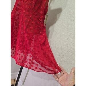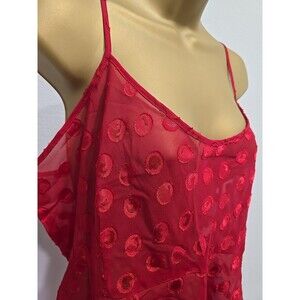 Cherry Red Sheer Chemise Dress Womens Plus 2x Polka Dot Lingerie Boudoir Sleep