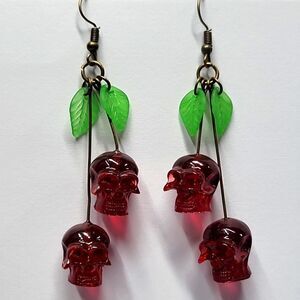 Cherry Skull Fruit Dangle Halloween Horror Rock n Roll Earrings