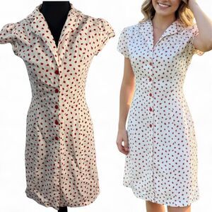 Cherry Sue S Vintage 1940s Strawberry Print Button Down Dress.