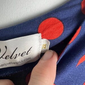 Cherry Velvet Plus Blue.Red Polka Dot Retro Rockabilly 100% Cotton Dress Size 2X