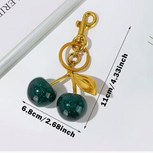 Cherry! bag charm in hunter green with sparkles and gold hardware