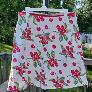 Tommy Hilfiger skirt, cherry print skirt, fruit print skirt, retro skirt, vintage-inspired skirt, A-line cotton skirt, summer skirt, mid-length skirt, Y2K style, Made in Hong Kong, size 14 skirt, red and cream skirt, playful print skirt.