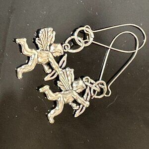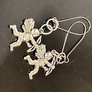 Cherub Angel Cupid Earrings Drop Dangle Silver Lightweight Baroque Gift Xmas