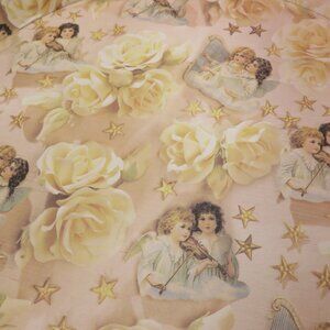 Cherb Angels, Yellow Roses, and Stars cream Hat Box with design inside & out
