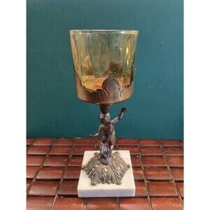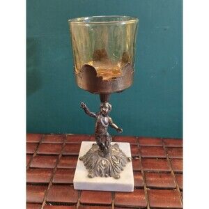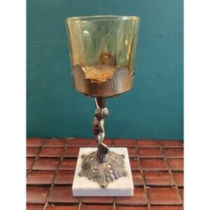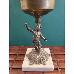 Cherub Candle Holder Bronze w/ Marble Base Vintage Hollywood Regency