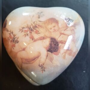 Cherub Heart Shaped Trinket Box with blues