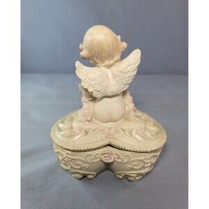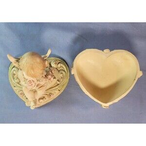 Cherub Trinket Heart Box Bisque Angel w/ Roses Jewelry Valentine Carved Case
