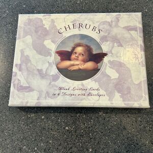 Set of blank greeting cards featuring cherub designs. Includes envelopes. Perfect for any occasion.