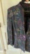 This is the coolest jacket! The button closure is actually a magnet (pictured)! Freshly laundered and ready for its next adventures! The tiny dots are embroidered but are under a layer of thin black fabric. It’s really unique and fancy! Shoulder pads pictured.