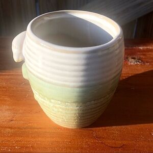 Coastal Dolphin Mug by Chesapeake Bay. Features a 3D / Raised High Relief Dolphin & Waves. Colors in the Glaze Are Gray, Green & Tan.
