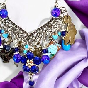 Cheshire Cat Alice in Wonderland charm necklace Vintage pieces gorgeous crystal glass stainless aluminium lobster clasp Vintage charms. New and old charms. Unique and one f a kind. Alice’s Cheshire Cat Alice in Wonderland charms. Chunky Funky and Cute!! Vintage charms, some are old some are new. Eclectic and charming. So unique and one of a kind. The charm holder with charms on as about 2” high and 3.5” wide. Sizes are approximate. Where your love of Cheshire Cat on your neck. Beautiful statement necklace. Take care of your jewelry and it will gleam for years.