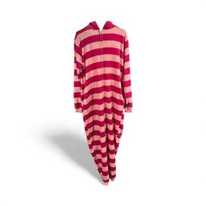 Cheshire Cat Hooded Fleece Costume Pajamas W/ Pockets Pink & Fuchsia Stripes Siz