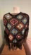Chesley Black Crochet shawl poncho with Multicolor Accents granny squares OSFM