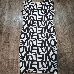 all over print LOVE dress polyester blend form fitting White and black Plus Size 1X