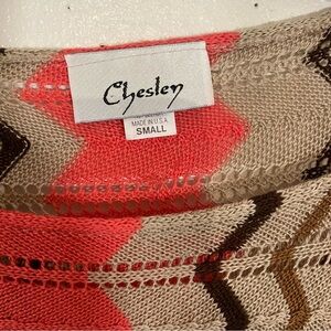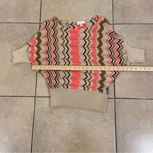 Chesley Tan Multicolor Zigzag Striped Batwing Short Sleeve Sweater Y2K Sz S USA