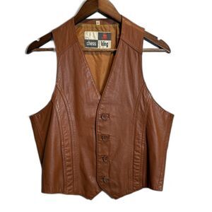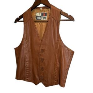 Chess King Camel Leather Vest Men's Size Medium Cowboy Ranch Horse Vintage