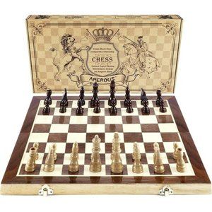 Chess Set, 15"x15" Folding Magnetic Wooden Standard Chess Game Board Set