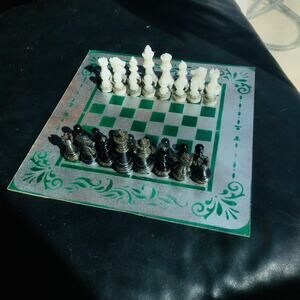 Chess Set - Green Silver